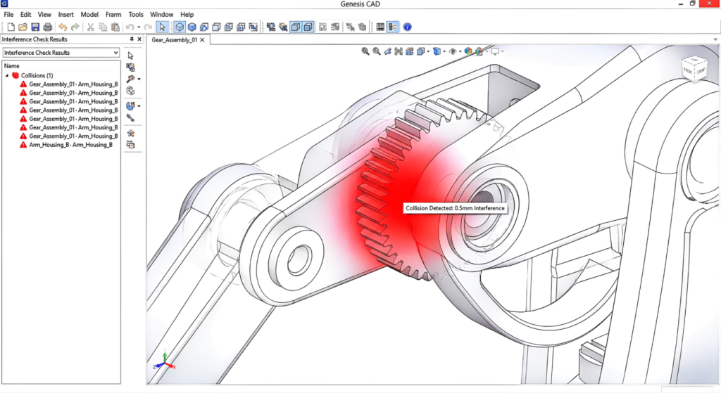 - 干涉检查(Interference Checking): 在虚拟装配中发现零件之间的碰撞,避免了昂贵的物理样机试错成本。
