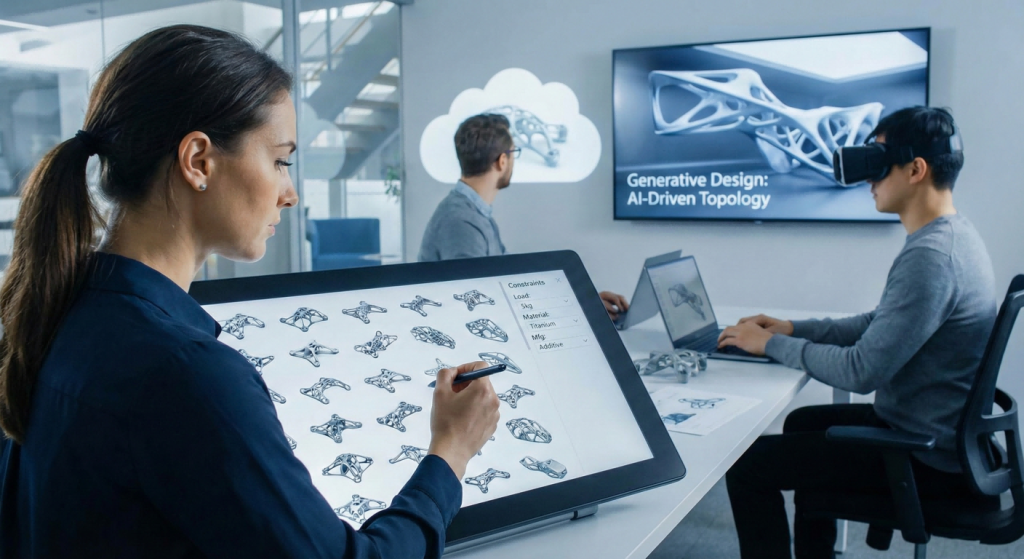 - 创成式设计(Generative Design): 结合AI算法,设计师不再需要绘制具体的形状,只需输入约束条件(载荷、材料、制造方式),计算机会自动生成成百上千种即使是最资深的工程师也无法想象的拓扑结构。